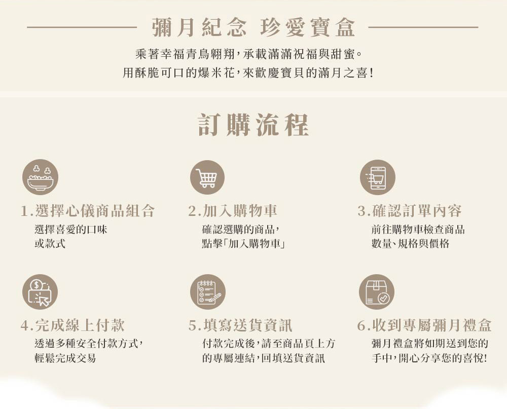 為確保珍愛寶盒順利出貨,請於出貨前一個月完成訂購與付款;