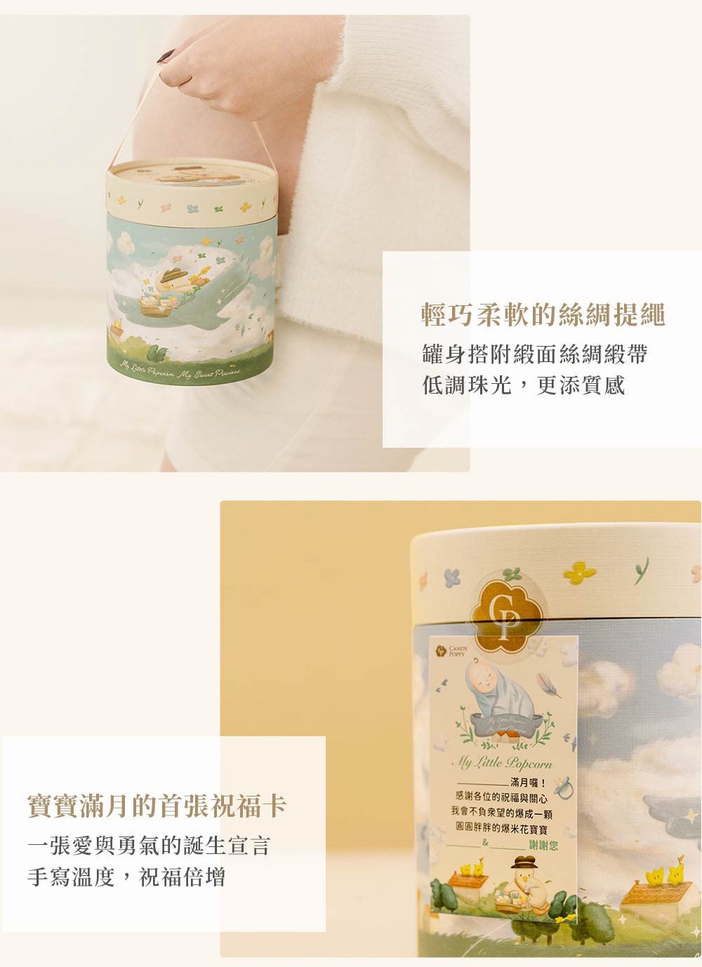 香脆可口的爆米花,寓意滿滿祝福,是歡慶新生喜悅的最佳伴手禮!