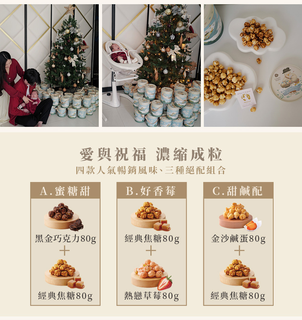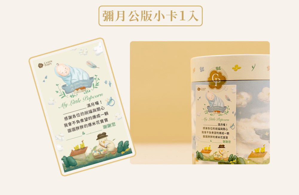 香脆可口的爆米花,寓意滿滿祝福,是歡慶新生喜悅的最佳伴手禮!