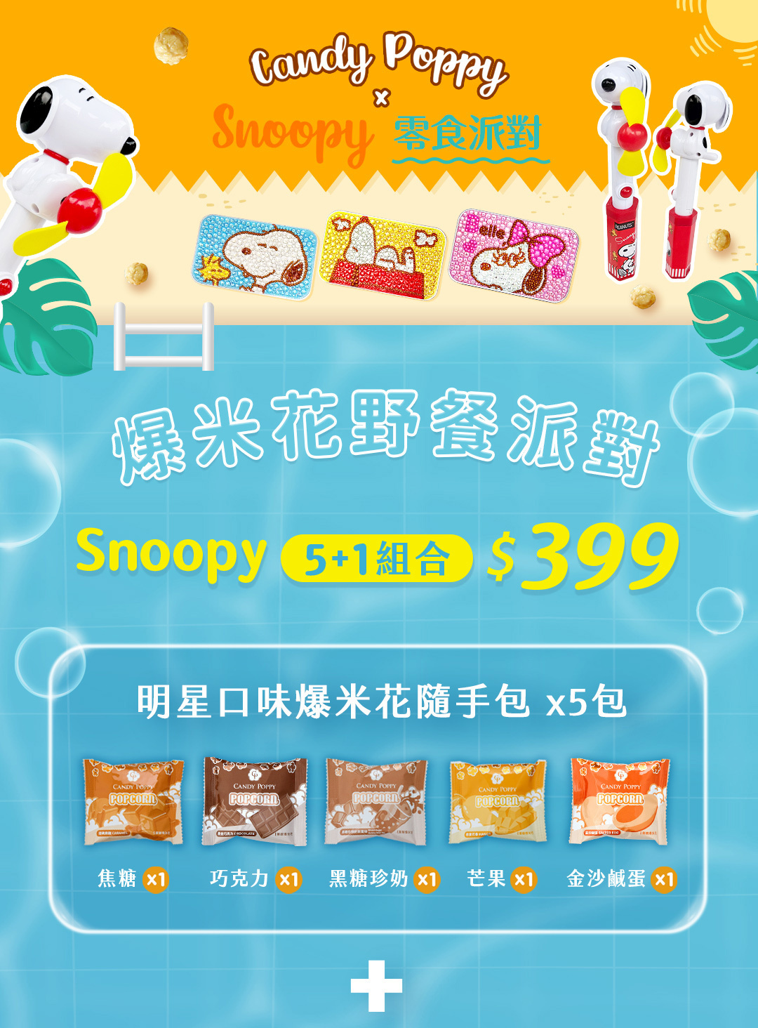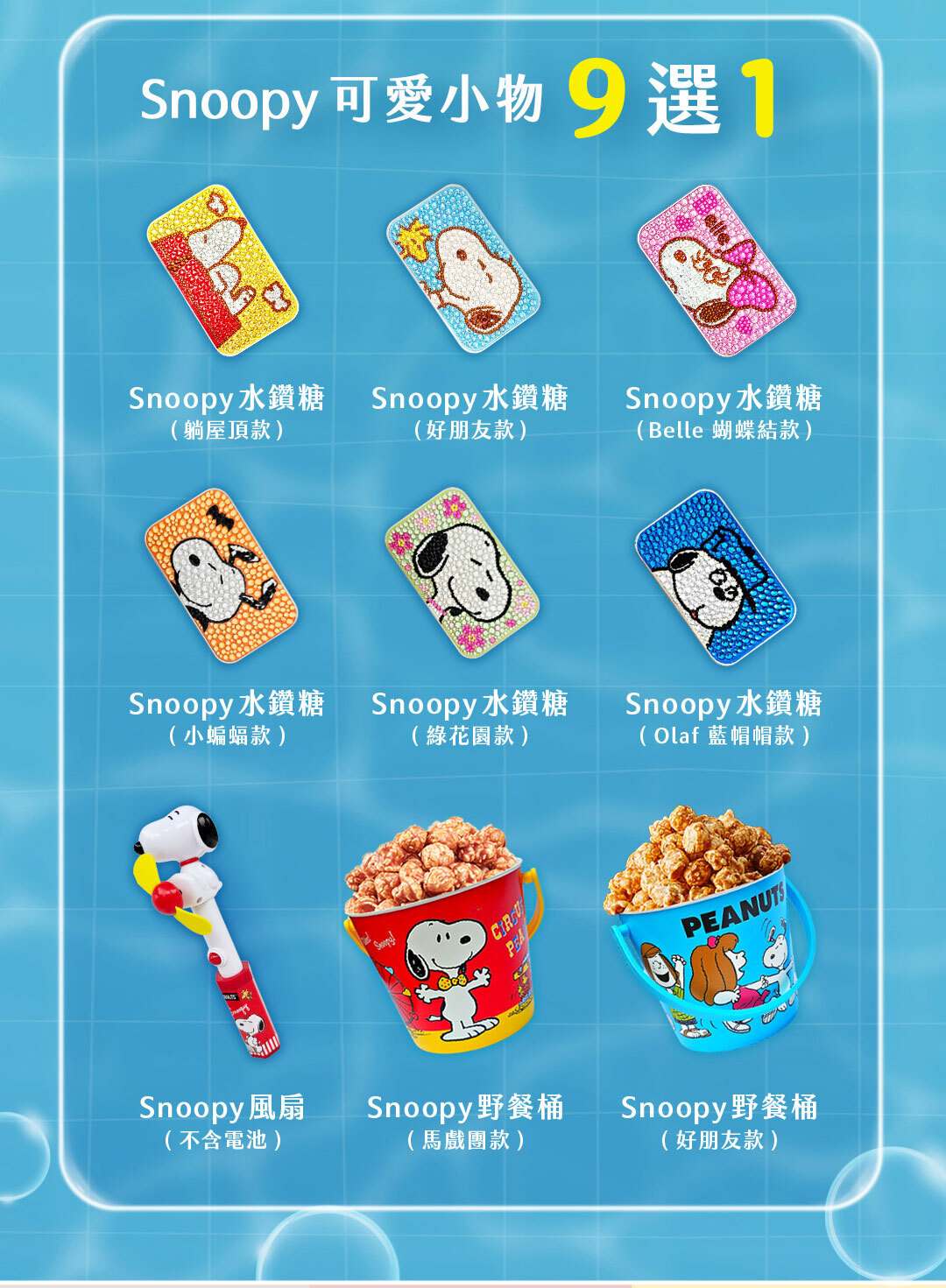 ✦史努比可愛小物 9 選1 + 明星口味爆米花隨手包×5